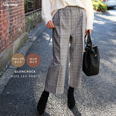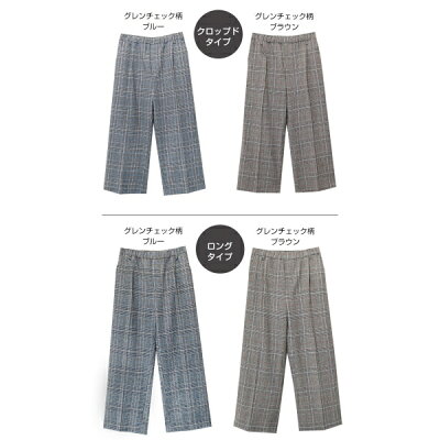 ワイドパンツ レディース グレンチェック柄 クロップド ロング ツイード調 SMLサイズ [キャンセル・変更・返品不可]