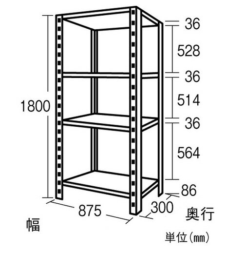 ※法人専用品※エスコ 875x300x1800mm150kg用4段スチール棚 EA976AA-90A