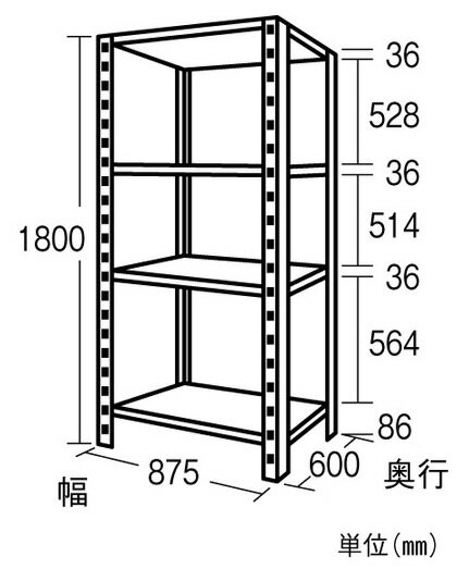 ※法人専用品※エスコ 875x600x1800mm150kg用4段スチール棚 EA976AA-90B