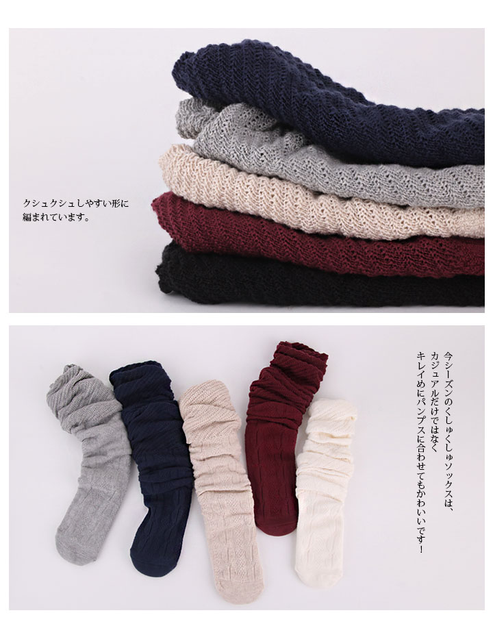 レディース ロングソックス くしゅくしゅ ルーズソックス 無地 全6色 リブ ケーブル編み 2タイプ シンプル 秋冬ソックス 靴下 23-25cm 女性 婦人 学生 ソックス くつした くつ下 おしゃれ レディース ハイソックス 福袋