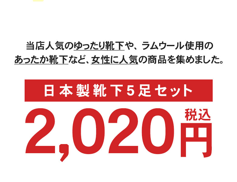 当店人気のゆったり靴下や、 ラムウール使用のあったか靴下など、女性に人気の商品を集めました。